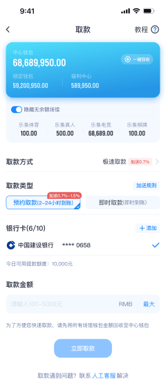 綁定完成後在取款金額輸入框輸入金額,點擊立即取款。